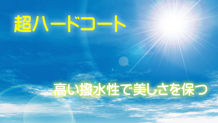 これらは新車購入後わずか5~6年でボディなどの劣化が始まると言われていますが、「超ハードコート」でコーティングすれば耐候性が倍化し、水アカ等が付着しても簡単に通常の家庭用の界面活性剤入りの洗剤で落とすことができます。